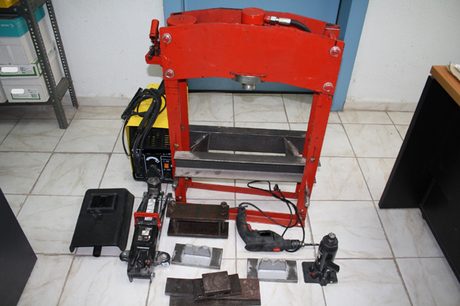 • μία πρέσα πίεσης 15 τόνων με σιδερένια καλούπια, κατασκευής μισού και ενός κιλού ηρωίνης