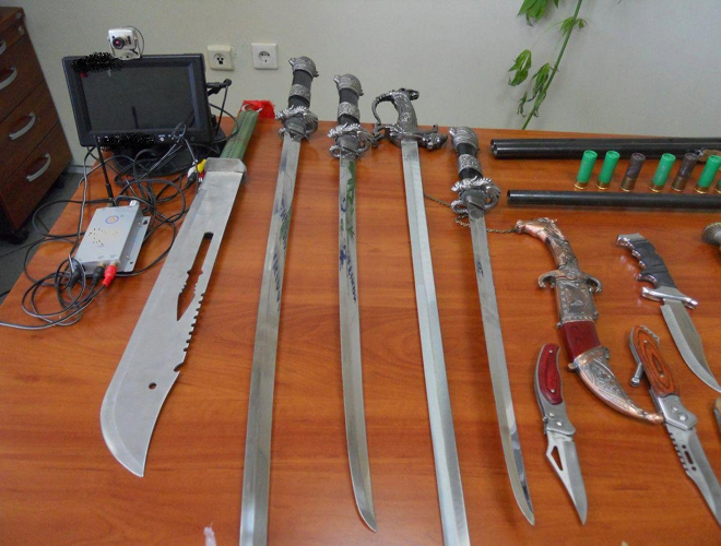 -έξι (6) μαχαίρια και τρία (3) στιλέτα,
