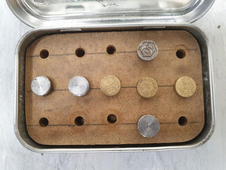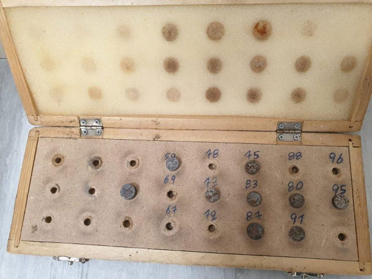 -πλήθος από εργαλεία για τις παρεμβάσεις, μολύβδινες σφραγίδες, μεταλλικές μήτρες σφράγισης και άλλα συναφή αντικείμενα,