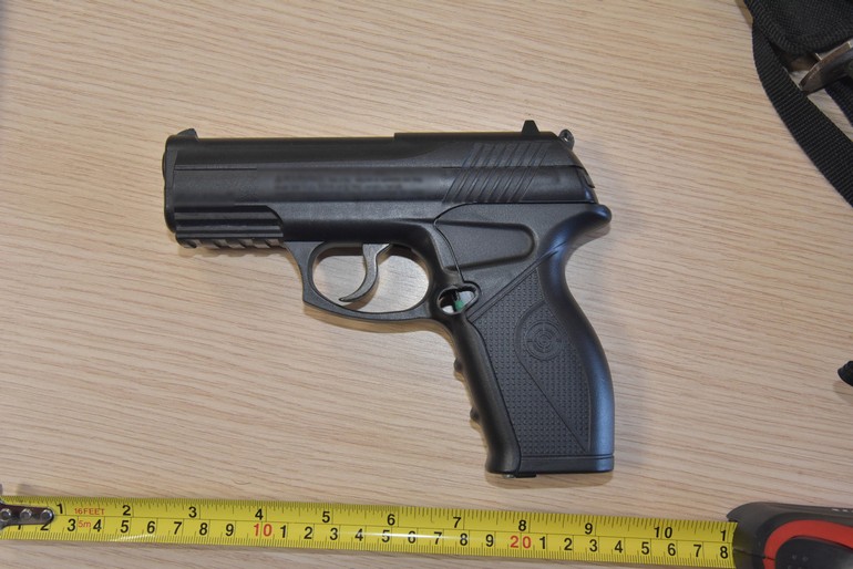 αεροβόλο όπλο και (2) μαχαίρια,