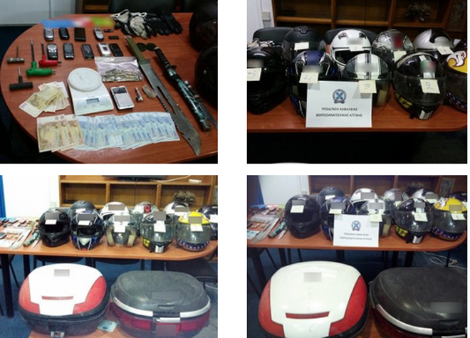 Από τα μέχρι στιγμής στοιχεία προκύπτει ότι τα μέλη της σπείρας έχουν αφαιρέσει δέκα οκτώ (18) μοτοσικλέτες από τις περιοχές Χολαργού, Παπάγου, Γέρακα, Νέου Ψυχικού, Καισαριανής, Ηλιούπολης, Γλυφάδας, Αγίου Δημητρίου και διαφόρων συνοικιών της Αθήνας, ενώ η έρευνα συνεχίζεται για την ταυτοποίηση τυχόν περαιτέρω κλοπών.