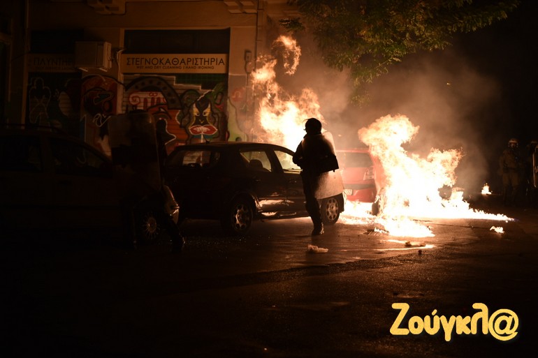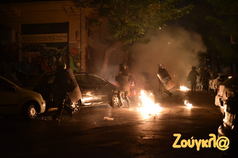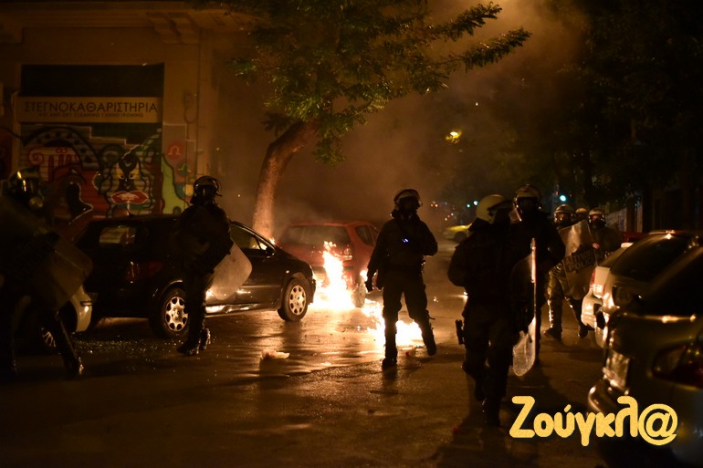 Κατά την διάρκεια της πορείας, σημειώθηκε ένταση με νεαρούς να καίνε κάδους και να γίνεται ρίψη αντικειμένων προς τις διμοιρίες των ΜΑΤ.