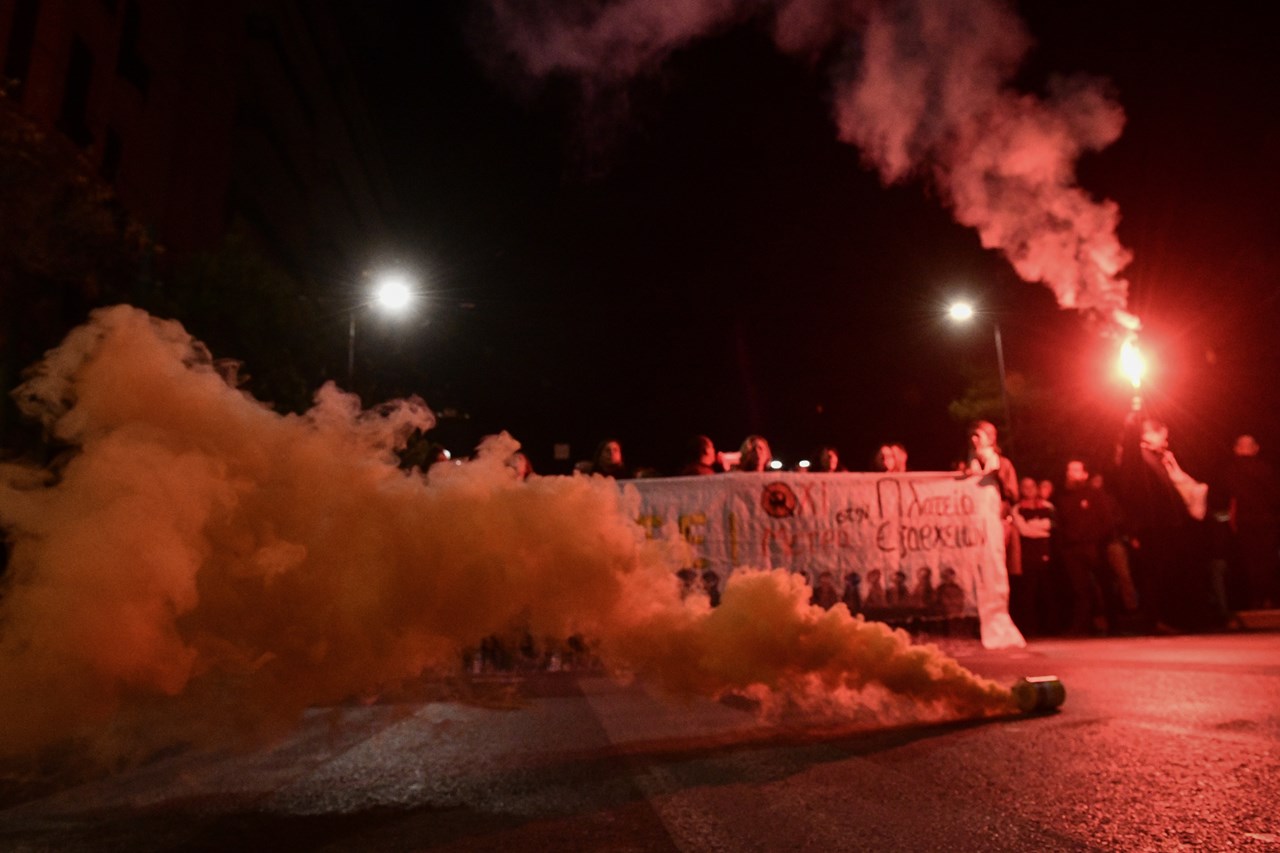 Χίλια περίπου άτομα ανέβηκαν την οδό Στουρνάρη κρατώντας πανό, φωνάζοντας συνθήματα ενώ κάποιοι από αυτούς άναψαν και καπνογόνα.