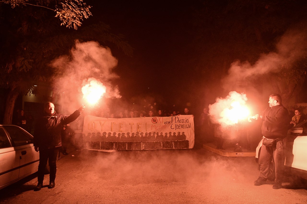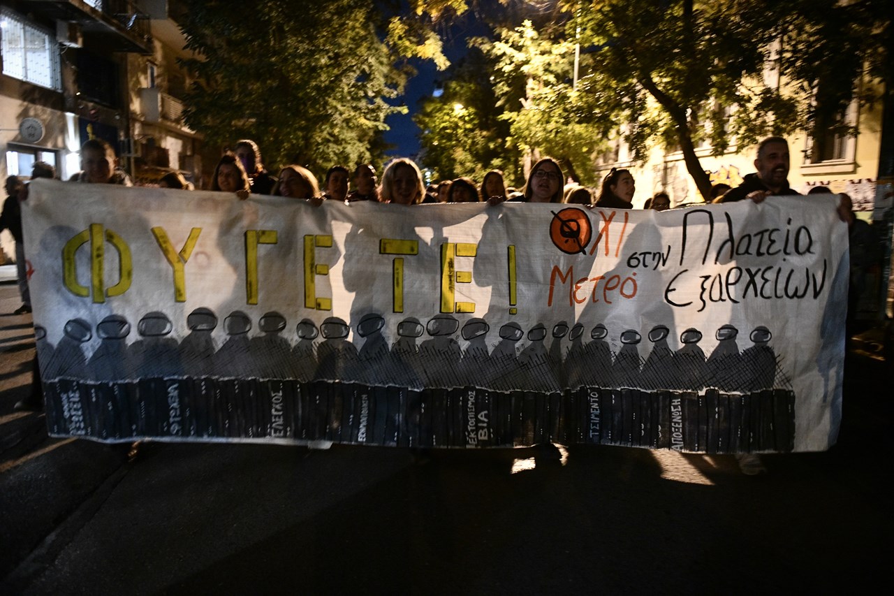 Πορεία διαμαρτυρίας κατά της δημιουργίας σταθμού Μετρό στην περιοχή των Εξαρχείων πραγματοποιήθηκε το βράδυ του Σαββάτου στους δρόμους της περιοχής.