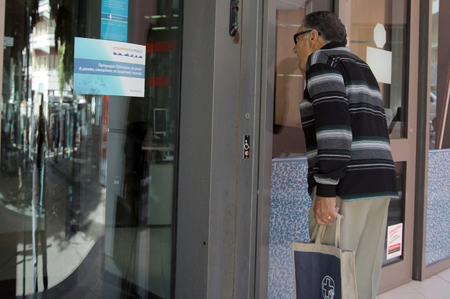 Μπροστά σε κατεβασμένα ρολά τραπεζών βρέθηκαν σήμερα το πρωί κάτοικοι στο Ηράκλειο Κρήτης -στην πλειονότητά τους συνταξιούχοι.