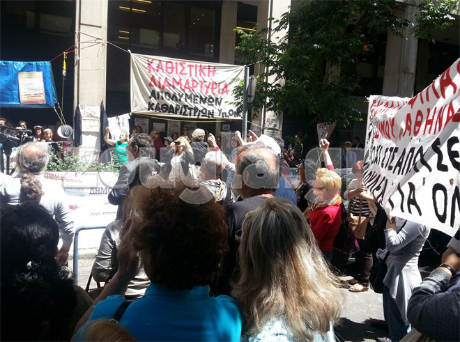 Λίγο μετά τις 11.00 οι σχολικοί φύλακες ξεκίνησαν πορεία προς τη Βουλή και στη συνέχεια κατευθύνθηκαν προς το Υπουργείο Οικονομικών, προκειμένου να ενωθούν με τις απολυμένες καθαρίστριες του ΥΠΟΙΚ, που πραγματοποιούν συγκέντρωση διαμαρτυρίας στην οδό Νίκης.