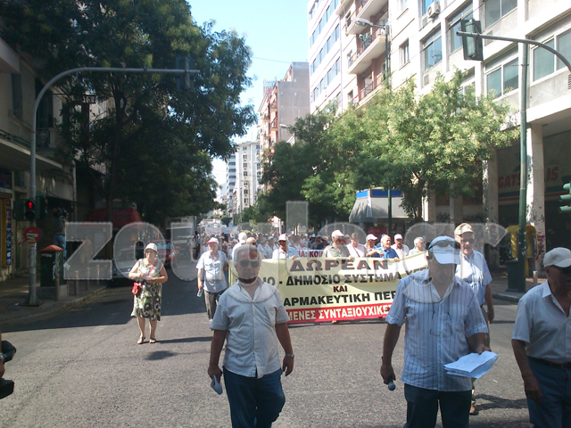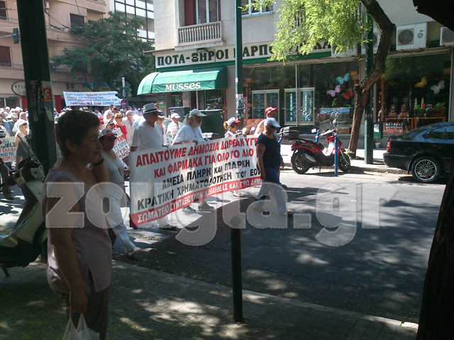 Συγκέντρωση διαμαρτυρίας έξω από το Υπουργείο Υγείας, στην οδό Αριστοτέλους, πραγματοποίησαν σήμερα το πρωί περίπου 200 συνταξιούχοι από τις Συνεργαζόμενες Συνταξιουχικές Οργανώσεις ΙΚΑ, ΕΛΤΑ, Δημοσίου, ΟΣΕ, ΟΑΕΕ, ΝΑΤ και ΟΤΑ. Νωρίτερα είχαν συγκεντρωθεί στην πλατεία Κοτζιά.