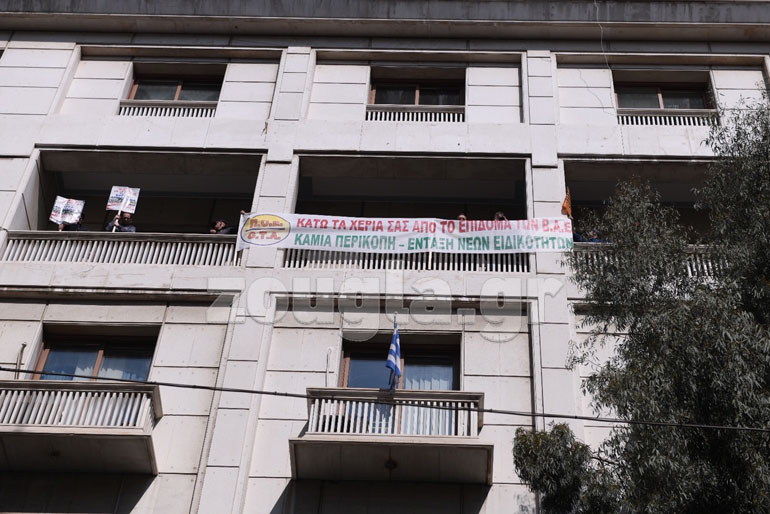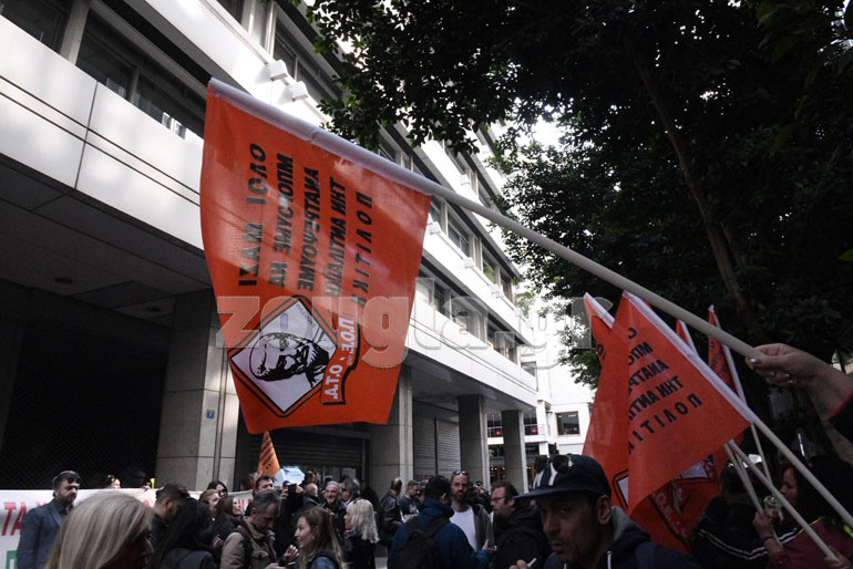Oι εργαζόμενοι έξω από το Υπουργείο Οικονομικών: