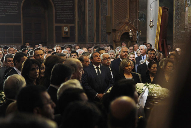 Επίσης, στον ιερό ναό έφτασαν οι κ.κ. Μανώλης Γλέζος, Ν. Κακλαμάνης, η κυρία Όλγα Κεφαλογιάννη, το ζεύγος Λυκουρέζου, ο Ηλίας Ψινάκης και πολλοί εκπρόσωποι του πολιτικού, επιχειρηματικού και δημοσιογραφικού κόσμου.
