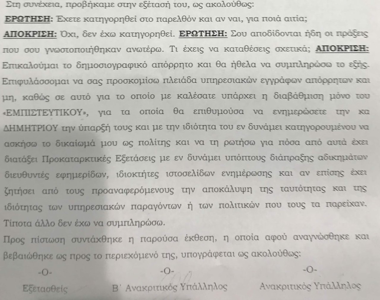 Παραθέτουμε το περιεχόμενο της ανωμοτί εξέτασής μας.