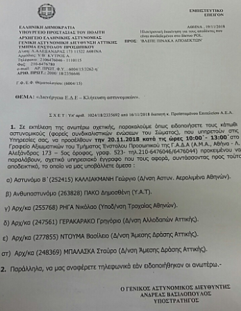 Χθες, κληθήκαμε για ανωμοτί εξέταση μετά από εντολή της εισαγγελέα Ξένης Δημητρίου, αναφορικά με ρεπορτάζ του bloko.gr με ημερομηνία 21 Νοεμβρίου 2018 και με τίτλο: «Ο Άρης κάνει πόλεμο… Ποιοι κορυφαίοι συνδικαλιστές της ΕΛΑΣ καλούνται να… μετανοήσουν!».
