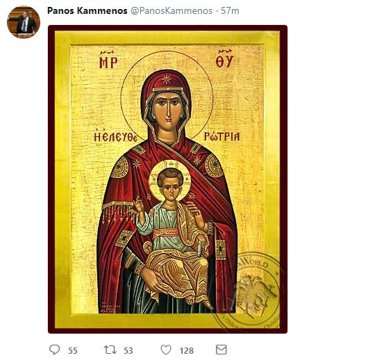 Λιτή και συμβολική ήταν η αντίδραση του υπουργού Εθνικής Άμυνας στην αναγγελία της είδησης, παραμονή του Δεκαπενταύγουστου, ότι αποφυλακίστηκαν οι δύο Έλληνες στρατιωτικοί που κρατούνταν στις φυλακές της Αδριανούπολης. Ανήρτησε στον προσωπικό του λογαριασμό στο Twitter μια φωτογραφία από την εικόνα της Παναγίας της Ελευθερώτριας.