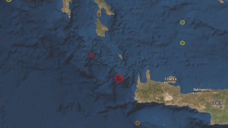 Σεισμική δόνηση μεγέθους 6,1 βαθμών της κλίμακας Ρίχτερ σημειώθηκε στις 09.23 το πρωί της Τετάρτης νοτίως των Κυθήρων και δυτικά-βορειοδυτικά της Κρήτης. Το επίκεντρο του σεισμού εντοπίζεται 20 χιλιόμετρα νότια των Αντικυθήρων και 84 χιλιόμετρα δυτικά από τα Χανιά.