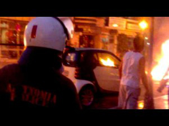 Κατά τις 20.30 οι οδομαχίες μεταξύ διαδηλωτών και ανδρών των ΜΑΤ συνεχίστηκαν και στο κέντρο του Βόλου επί της οδού Φιλελλήνων.