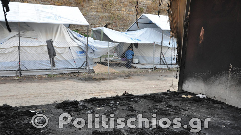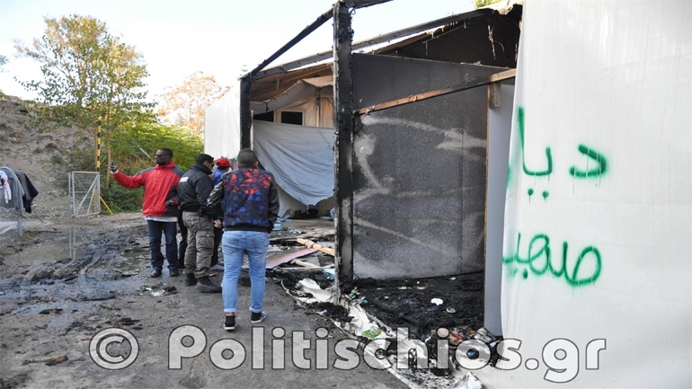 Στάχτη και αποκαΐδια, καμένες κουβέρτες και προσωπικά αντικείμενα αλλά και διάσπαρτες ζημιές σε όλο τον καταυλισμό συνθέτουν τη σημερινή θλιβερή εικόνα μίας δομής.