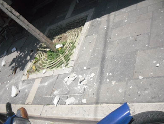 Την ταχύτητά τους έκοψε η τέντα καφετέριας που βρίσκεται κάτω από την οικία που αποκολλήθηκαν τα μεγάλα και βαριά κομμάτια του σοβά, με αποτέλεσμα να γλυτώσουν πιθανού τραυματισμού οι θαμώνες της καφετέριας.