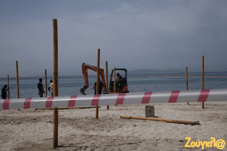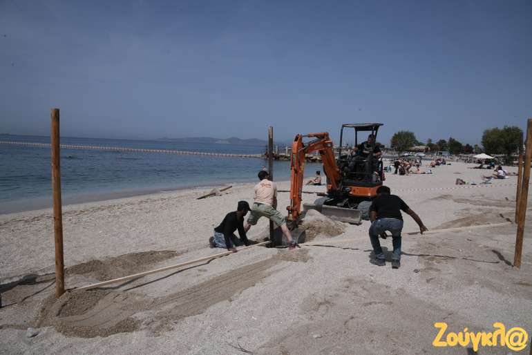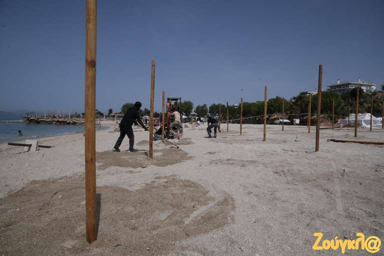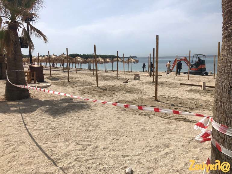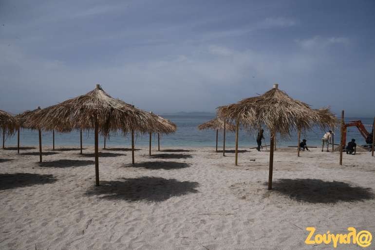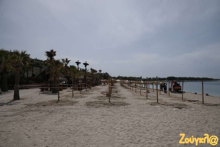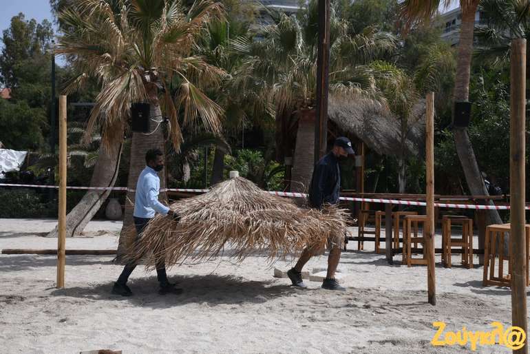 Ομπρέλες, αποστάσεις, σημεία αναμονής για τα μπαρ, ξαπλώστρες μπαίνουν στη θέση τους από τα ειδικά συνεργεία, που εργάζονται πυρετωδώς, προκειμένου να είναι όλα έτοιμα για την υποδοχή των πρώτων λουόμενων της σεζόν.
