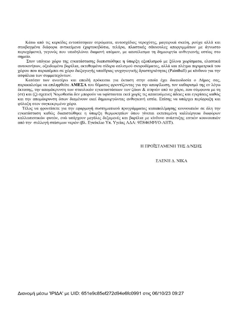 Δυστυχώς από τον Οκτώβριο του 2023 έως και σήμερα καμία ενέργεια δεν πραγματοποιήθηκε από τους αρμόδιους για την αποκατάσταση της νομιμότητας στον χώρο του δημοτικού Κολυμβητηρίου.