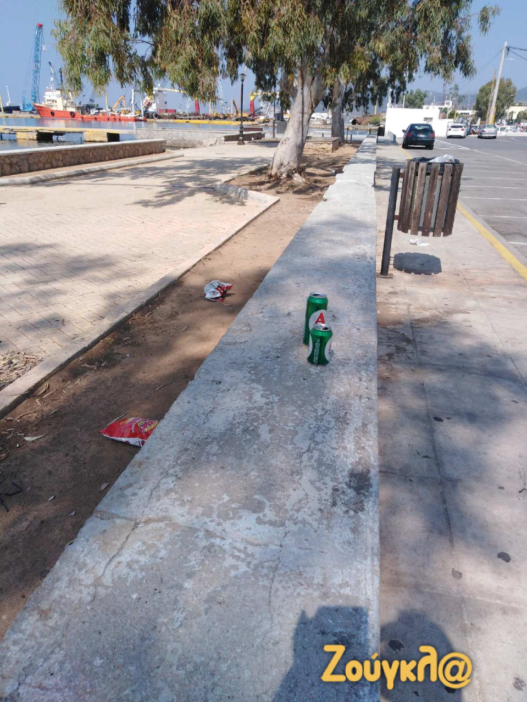 Σπασμένα παγκάκια, κομμένα καλώδια σε στύλους φωτισμού δίπλα στην παιδική χαρά, βγαλμένα προστατευτικά κάγκελα κατά μήκος της περιτοίχισης της προβλήτα που αγκυροβολούν τα πλοία της εταιρείας Aegean, χώροι γεμάτοι σκουπίδια και ξερά χόρτα, συνθέτουν το παζλ της αδιαφορίας από πλευράς του αρμόδιου φορέα διαχείρισης των χώρων που είναι ο Ο.Λ.Ε Α.Ε. Στην ίδια προβλήτα παραμένει αγκυροβολημένο έως σήμερα το Catamaran παρότι κάηκε κάτω από άγνωστε συνθήκες. Οι εικόνες μιλούν από μόνες τους.