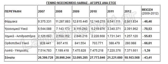 Πώς είναι δυνατόν, π.χ. στο Υγειονομικό Υλικό, το 2009 να έχουμε 8 εκατ. ευρώ αγορές και το 2012 να πέφτουμε στα 2 εκατ. ευρώ; Μείωση κατά 70%.