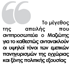 Αυτή τη στιγμή ο Μαζιώτης είναι αιχμάλωτος του κοινωνικού και ταξικού πολέμου. Δεν είναι δίκαιο να είναι αυτός στη φυλακή. Δίκαιο είναι να είναι ελεύθερος και να αγωνίζεται για την κοινωνική Επανάσταση. Δίκαιο θα ήταν να είναι αλυσοδέσμιοι στη θέση του και να δικάζονται στα λαϊκά δικαστήρια αυτοί που ευθύνονται για την κατάντια του ελληνικού λαού, αυτοί που ψήφισαν και εφαρμόζουν τα μνημόνια. Θα έπρεπε να είναι η οικονομική ελίτ, οι πλούσιοι που πίνουν το αίμα των προλετάριων, η πολιτική ελίτ και οι υπηρέτες της. Δίκαιο θα ήταν να είναι αλυσοδέσμιοι οι Σαμαράς, Βενιζέλος, Παπανδρέου, Παπαδήμος και οι εγκληματικές οργανώσεις τους, οι τροϊκανοί και οι ηγήτορες της Ευρωπαϊκής Ένωσης. Τα ντόπια και ξένα αφεντικά που για τα οικονομικά τους συμφέροντα ρημάζεται ο τόπος και οι άνθρωποι που ζουν σε αυτόν. Αυτοί είναι οι πραγματικοί τρομοκράτες και ληστές. Αυτοί είναι οι στυγνοί εγκληματίες και δολοφόνοι.