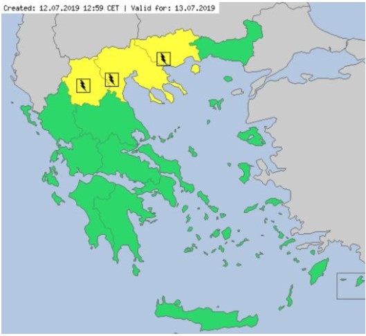 Για την κακοκαιρία εξέδωσε ειδοποίηση και η ευρωπαϊκή υπηρεσία MeteoAlarm. Στον χάρτη που δημοσιοποίησε εμφανίζονται με κίτρινο χρώμα προειδοποίησης η ανατολική, η κεντρική και η δυτική Μακεδονία.