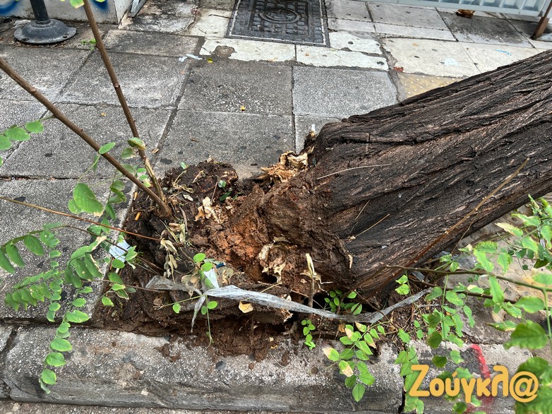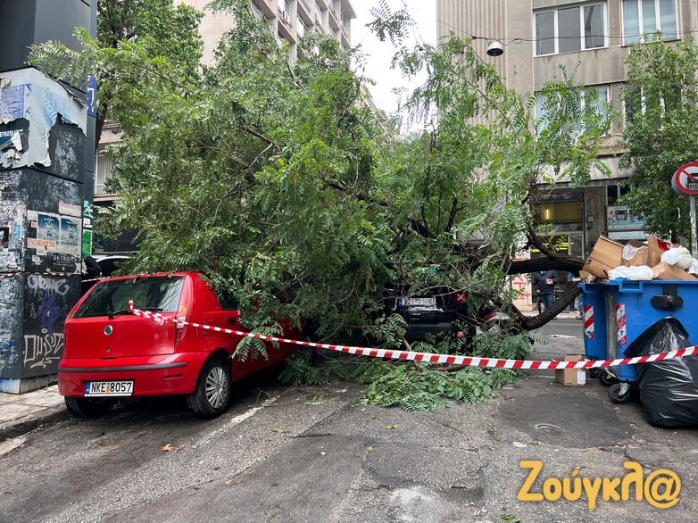 Στη συμβολή των οδών Εμμανουήλ Μπενάκη και Γαμβέτα στο κέντρο της Αθήνας, δέντρο έπεσε στον δρόμο, προκαλώντας τροχαίο ατύχημα, καθώς χτύπησε έναν αναβάτη μηχανής και ένα διερχόμενο όχημα.