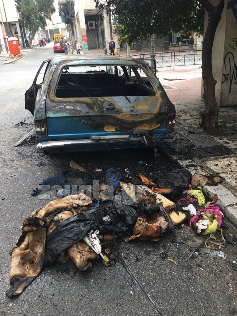 Άγνωστοι έβαλαν φωτιά και κατέστρεψαν ολοσχερώς ένα ΙΧ, περί τις 12 του μεσημεριού της Κυριακής, στη συμβολή των οδών Πειραιώς και Κολωνού στο κέντρο της Αθήνας.