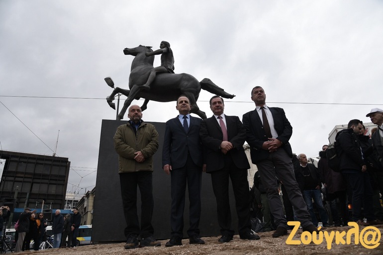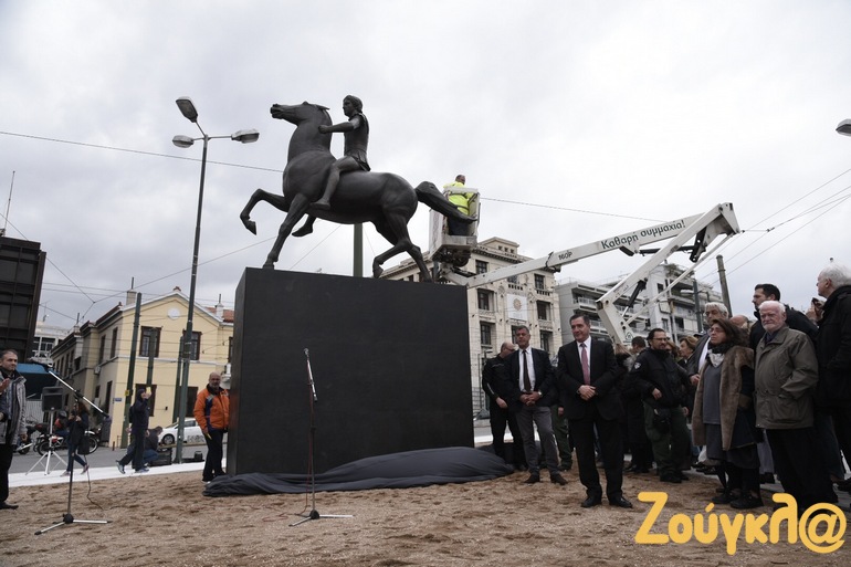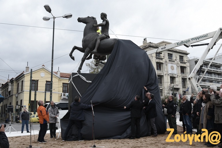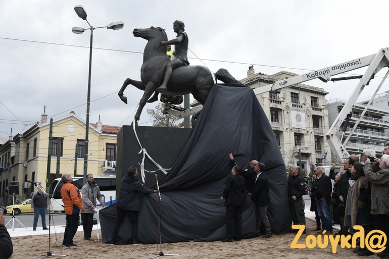 Τα επίσημα αποκαλυπτήρια του αγάλματος του Μεγάλου Αλεξάνδρου, στη συμβολή των λεωφόρων Αμαλίας και Βασιλίσσης Όλγας, πραγματοποιήθηκαν σήμερα το πρωί από τον δήμαρχο Αθηναίων Γιώργο Καμίνη.