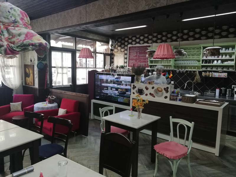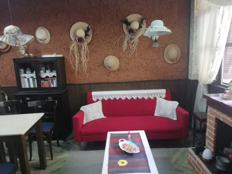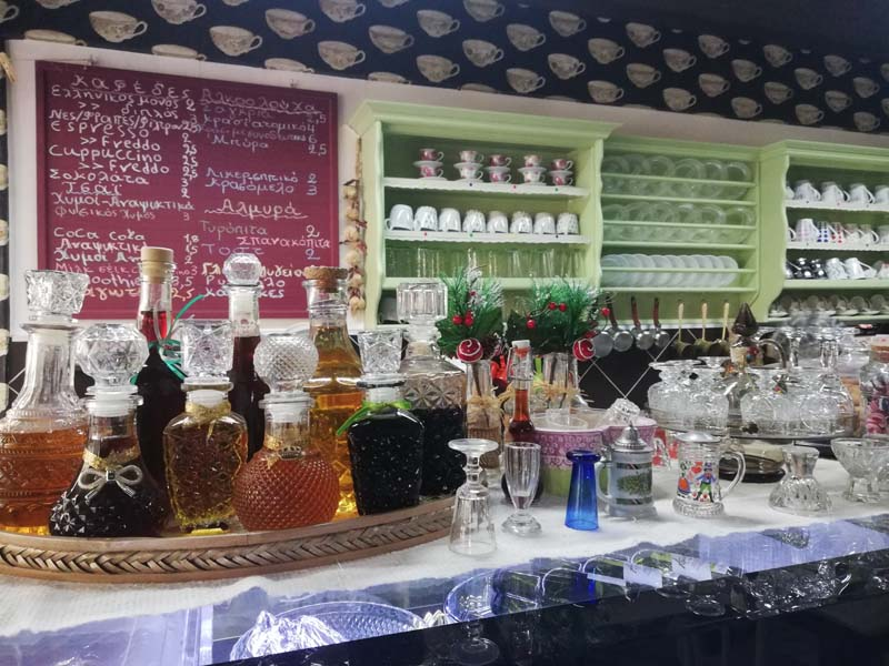 Ότι υπάρχει στο καφενείο είναι φτιαγμένο από τα χέρια και το μεράκι της κας Στεργίου. Το τσάι του βουνού της το φέρνουν φίλοι που το καλλιεργούν στα ορεινά της Φλώρινας, το φλαμούρι, η λουΐζα, η μέντα, το φασκόμηλο, ο δυόσμος καλλιεργούνται στο κτήμα της ενώ όπως μας εξομολογείται όλα τα είδη ζαχαροπλαστικής είναι φτιαγμένα από τα χέρια της. «Κάθε βδομάδα φτιάχνω τρία η τέσσερα διαφορετικά γλυκά που μπορεί κάποιος να γευτεί με το ρόφημα του». Η κρέμα ρουαγιάλ και οι λουκουμάδες σιροπιαστοί με κρέμα είναι τα δύο παραδοσιακά γλυκά της Φλώρινας που η κα Στεργίου περηφανεύεται για την υψηλή ποιότητα που τους προσδίδει. Το καφενείο δεν έχει τα ωράρια ενός κλασικού καταστήματος εστίασης, τις καθημερινές λειτουργεί 10:00 -13.30 και 16.00-21.30 τα Σάββατα είναι κλειστό και τις Κυριακές λειτουργεί μόνο το απόγευμα.