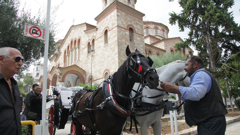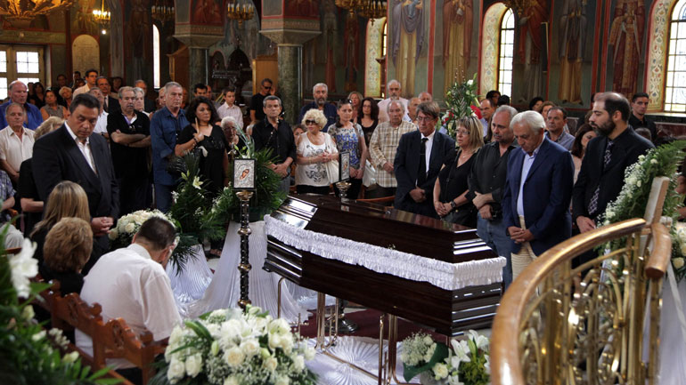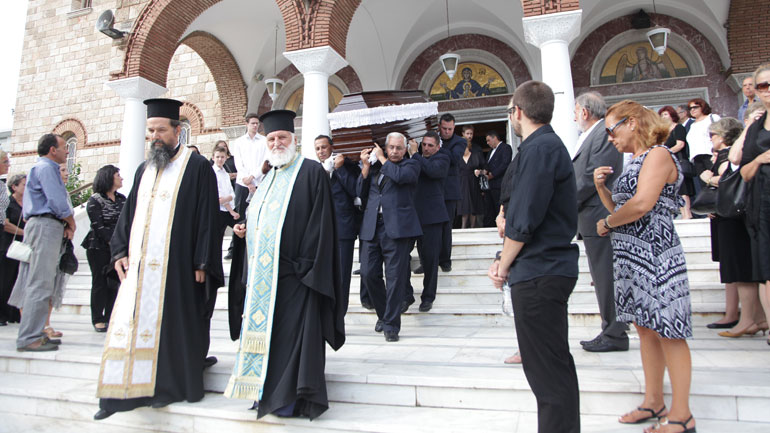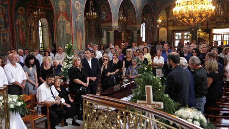 Η νεκρώσιμος ακολουθία εψάλη στον ιερό ναό Κοιμήσεως της Θεοτόκου (Παναγίτσα) στο Παλαιό Φάληρο το απόγευμα της Δευτέρας.
