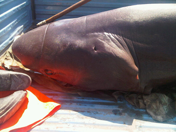 Το άκακο καρχαριοειδές, που τρέφεται αποκλειστικά με πλαγκτόν, πιάστηκε στα δίχτυα ψαράδων, οι οποίοι, εξαιτίας του βάρους του, δεν μπορούσαν να το μετακινήσουν και για αυτό το λόγο αναγκάστηκαν να επιστρατεύσουν έναν ολόκληρο γερανό.