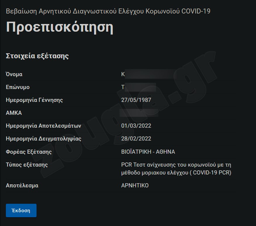 Βάσει πρωτοκόλλου, ο άνθρωπος έπρεπε στη συνέχεια να υποβληθεί και σε μοριακό έλεγχο. Έτσι και έκανε. Τη Δευτέρα το μεσημέρι πήγε σε διαγνωστικό κέντρο και έκανε PCR test.