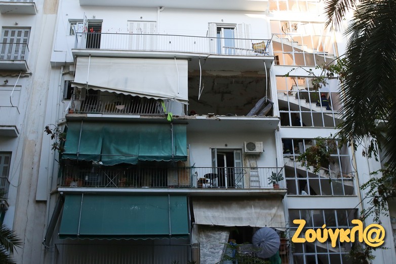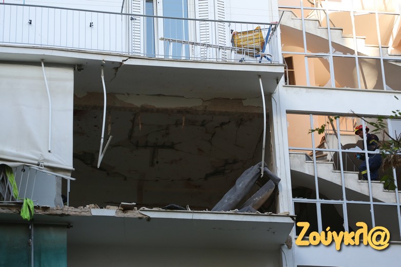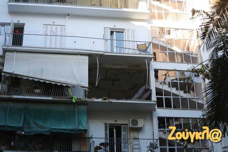 Οι ακόλουθες εικόνες από τον ακάλυπτο της πολυκατοικίας, είναι ενδεικτικές για την τεράστια καταστροφή που προκλήθηκε από την έκρηξη στο διαμέρισμα, όπου φαίνεται ξεκάθαρα ο τοίχος που έχει καταρρεύσει.