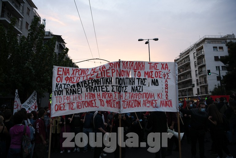 Στο Σύνταγμα ολοκληρώθηκε η αντιφασιστική πορεία που ξεκίνησε από το Εφετείο, στο πλαίσιο της συμπλήρωσης ενός χρόνου από την καταδίκη της Χρυσής Αυγής ως εγκληματικής οργάνωσης. Με κεντρικά συνθήματα «Ο Παύλος ζει, τσακίστε τους Ναζί» και «Έξω οι φασίστες από τις γειτονιές μας» αντιφασιστικές συλλογικότητες, κόμματα και οργανώσεις της Αριστεράς καθώς και συλλογικότητες του αντιεξουσιαστικού χώρου, συγκεντρώθηκαν αρχικά στο Εφετείο και κατευθύνθηκαν μέχρι το Σύνταγμα, όπου πραγματοποιείται μεγάλη αντιφασιστική συναυλία.