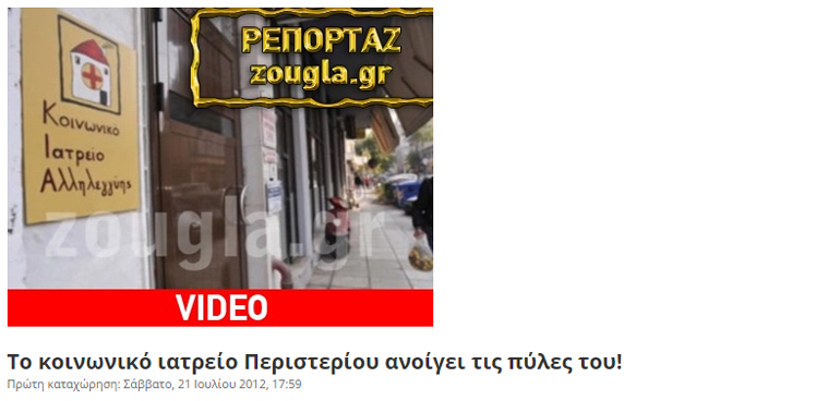 Δείτε το ρεπορτάζ του zougla.gr για το κοινωνικό ιατρείο του δήμου Περιστερίου: