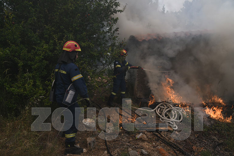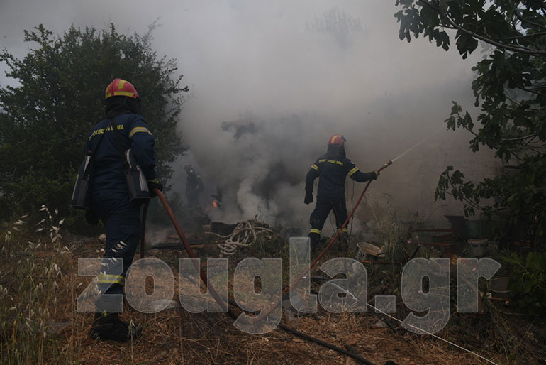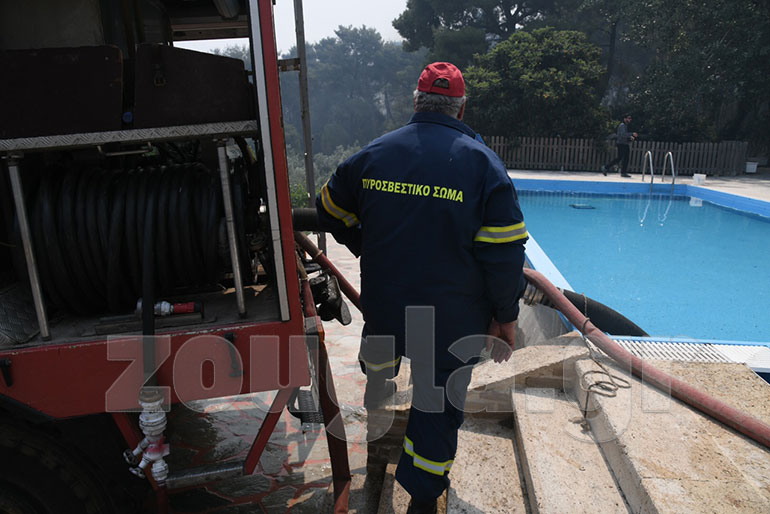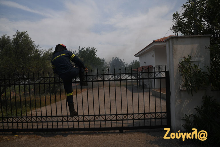 Αυτός είναι και ο λόγος για τον οποίο προληπτικά απομακρύνθηκαν κάτοικοι του Αλεποχωρίου, ενώ σε πολλές περιπτώσεις η φωτιά έφθασε μέσα στις αυλές σπιτιών και στάβλων.