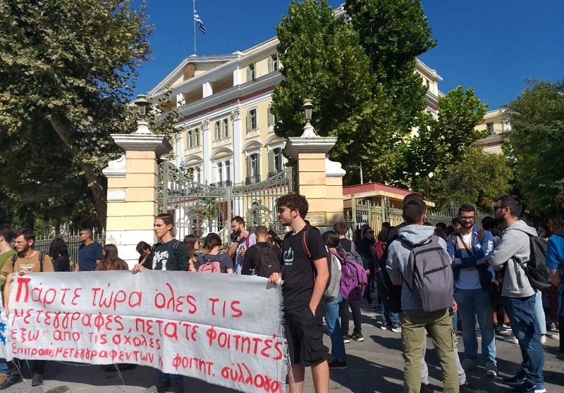 Συγκέντρωση διαμαρτυρίας πραγματοποίησαν φοιτητές έξω από το υφυπουργείο Εσωτερικών Μακεδονίας – Θράκης εκφράζοντας την αντίθεσή τους με την εξίσωση των πτυχίων ιδιωτικών κολεγίων με αυτά των ΑΕΙ.