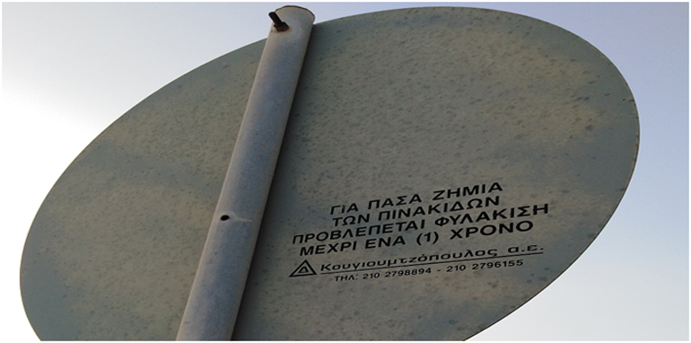 Εκ των ανωτέρω δύο όψεων της εμπρόσθιας φθαρμένης από τον χρόνο πινακίδας, αφού αλλάχτηκε το 2003 και της όπισθεν όψης, η οποία επιβεβαιώνει ότι, αλλάχτηκε το 2003, όπερ σημαίνει ότι, αντικατέστησε μία άλλη πινακίδα, ίδια με αυτήν των (60 χλμ/ώρα) η οποία είχε παραμείνει άλλα 17 χρόνια πίσω, ήτοι συνολικά, 34 ολόκληρα χρόνια από σήμερα από την σχέση 2003 -17 = 1986, όπου στην περιοχή αυτή έβοσκαν πρόβατα, καταλάβατε κ. διοικητά, αυτό λοιπόν που προκύπτει, λαμβανομένου υπόψη ότι, υπάρχουν σήμερα τοποθετημένες φρεσκοβαμμένες πινακίδες των 60 χλμ./ώρα, οι οποίες όμως δεν αναφέρουν ημερομηνία στην όπισθεν όψη, όπως η προηγούμενη φθαρμένη, είναι άραγε ένα τυχαίο γεγονός ! Αμέσως πιο κάτω παραθέτω απόσπασμα των φρεσκοβαμμένων πινακίδων των (60 χλμ/ώρα) χωρίς στο όπισθεν μέρος να αναφέρουν ημερομηνία τοποθέτησης!