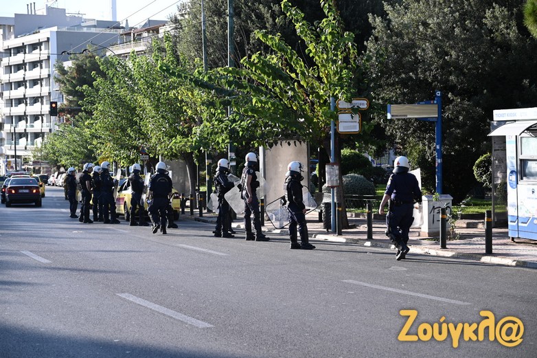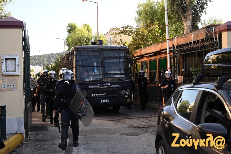 Έξω από τα δικαστήρια έχουν συγκεντρωθεί μέλη του αντιεξουσιαστικού χώρου.