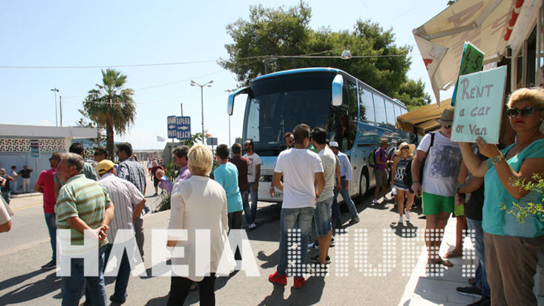 Για αρκετή ώρα χθες επικράτησε μεγάλη ένταση με αντεγκλήσεις την στιγμή που οι τουρίστες που αποβιβάζονταν στο λιμάνι του Κατακόλου παρακολουθούσαν με έκπληξη τα όσα διαδραματίζονταν.