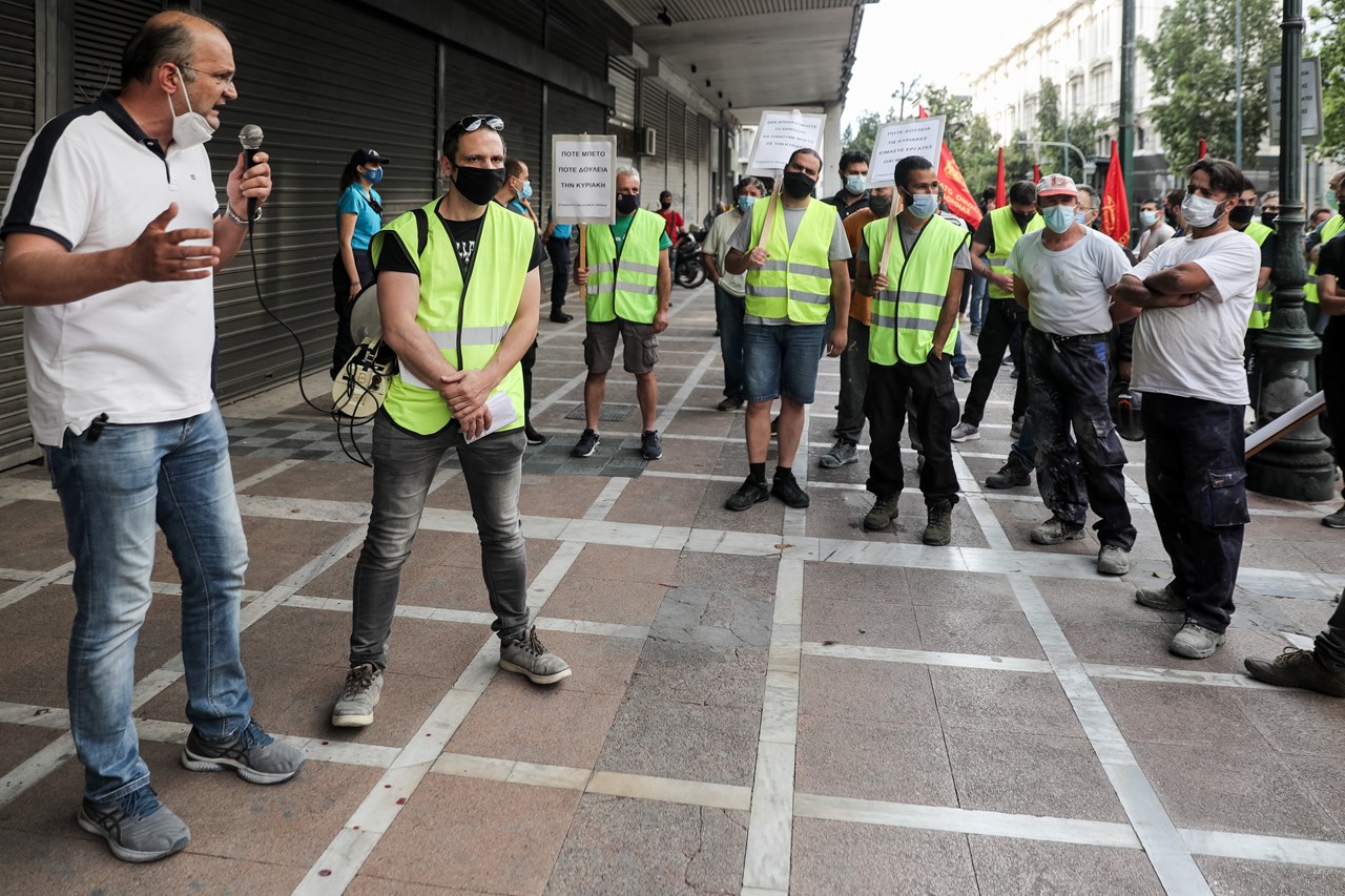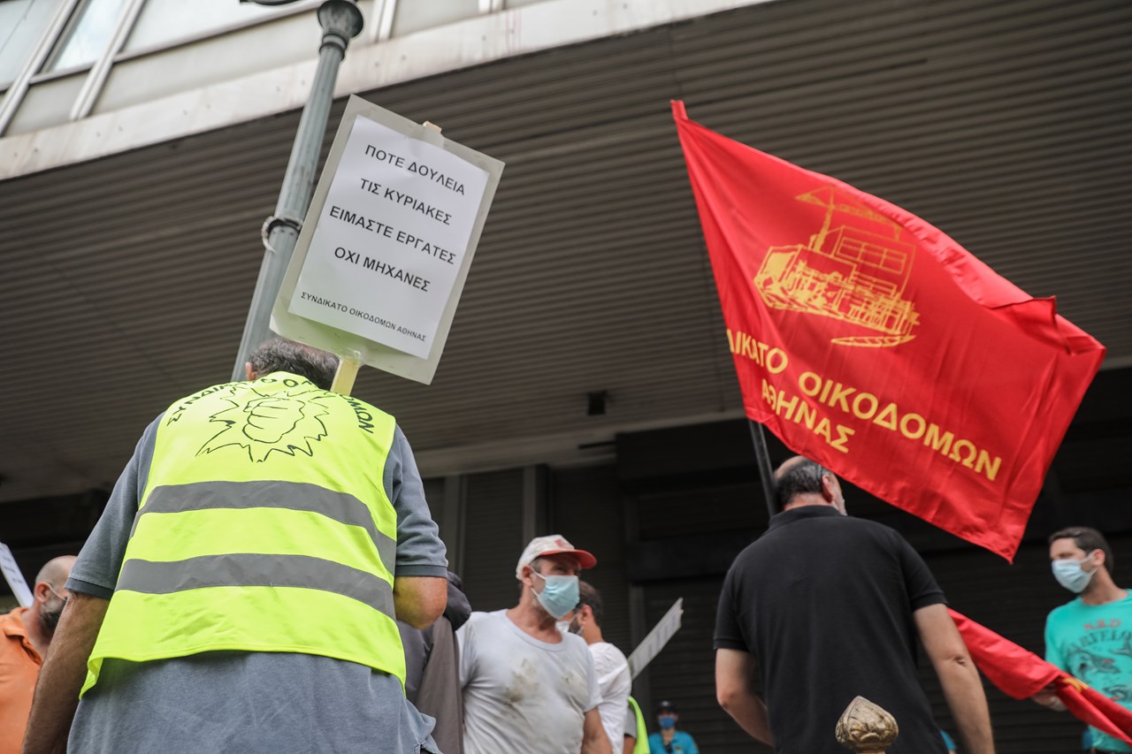 Σωματεία οικοδόμων συγκεντρώθηκαν στο σημείο και έριξαν μπετό στην είσοδο του κτηρίου του υπουργείου Εργασίας, ενώ η αστυνομία μετέβη στην περιοχή και έκανε χρήση χημικών.