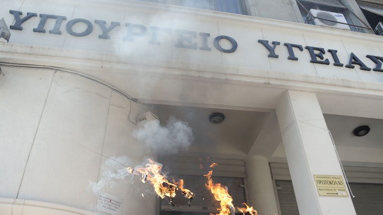 Κλοιό γύρω από το Μέγαρο Μαξίμου έχουν σχηματίσει δυνάμεις των ΜΑΤ, σε μία προσπάθεια να εμποδίσουν τους εργαζόμενους στα νοσοκομεία, να προσεγγίσουν, διαμαρτυρόμενοι για το καθεστώς που επικρατεί στον χώρο της Υγείας, στο πλαίσιο της 24ωρης απεργίας.