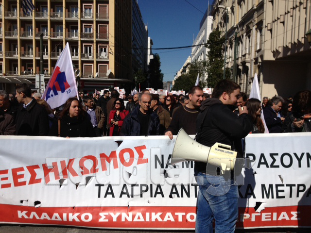 Σε εξέλιξη είναι η συγκέντρωση της ΓΣΕΕ και της ΑΔΕΔΥ (7.000 μέλη), στο πλαίσιο της 24ωρης πανελλαδικής απεργίας, ενώ λίγο μετά τις 13.00 ολοκληρώθηκε η πορεία του ΠΑΜΕ από την Ομόνοια στο Σύνταγμα.