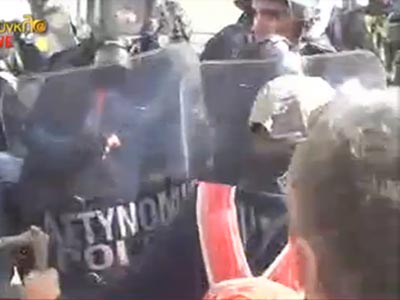 (Ένταση με τα ΜΑΤ στη Β. Γεωργίου, ώρα 13.35)