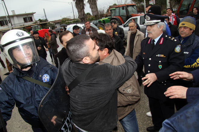 Λίγο μετά τη μία το μεσημέρι, ΜΑΤ και αγρότες συγκρούστηκαν με αποτέλεσμα να προκληθεί αναταραχή, η οποία σταμάτησε με τη χρήση χημικών από την Αστυνομία.