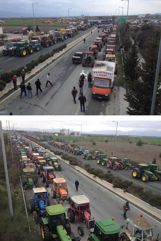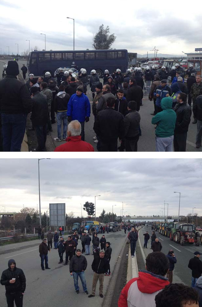 Επίσης, το απόγευμα της Δευτέρας, εκατοντάδες πεζοί αγρότεςεπιχείρησαν να καταλάβουν το οδόστρωμα της νέας Εθνικής Οδού Αθηνών – Θεσσαλονίκης στο ύψος του κόμβου της Νίκαιας. Ωστόσο, ισχυρή δύναμη των ΜΑΤ κάνοντας περιορισμένης έκτασης χρήση χημικών, τους απώθησε.