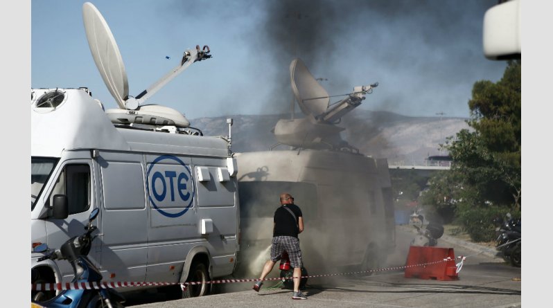Η παρουσία των αστυνομικών δυνάμεων ήταν έντονη από νωρίς, ίσως και πιο έντονη από κάθε άλλη φορά τα τελευταία χρόνια, όμως στις 18.15 μία μολότοφ -άγνωστο πώς- έπεσε σε βαν που βρισκόταν έξω από την είσοδο των δημοσιογράφων.