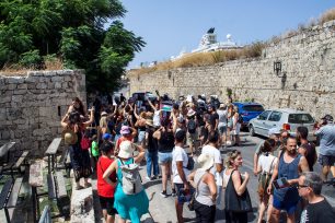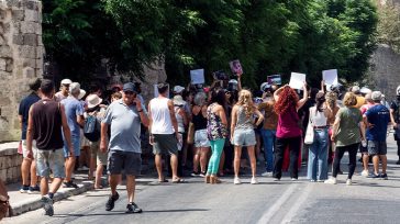 Με αφορμή την άφιξη στο λιμάνι της Ρόδου κρουζιερόπλοιου , που μετάφερε περισσότερους από 650 Ισραηλινούς τουρίστες στο νησί, δημιουργήθηκε ένταση μεταξύ των αστυνομικών δυνάμεων και διαδηλωτών, που είχαν σημαίες της Παλαιστίνης.