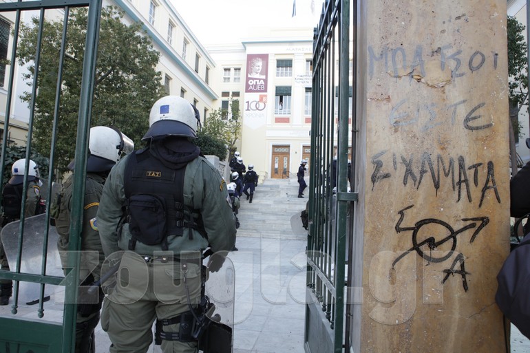 Ένταση επικρατεί στην ΑΣΟΕΕ, καθώς λίγο μετά τις 17:15 το απόγευμα της Τρίτης αστυνομικές δυνάμεις εισέβαλαν στον προαύλιο χώρο του Πανεπιστημίου, ενώ οι Αρχές προχώρησαν σε πέντε προσαγωγές.